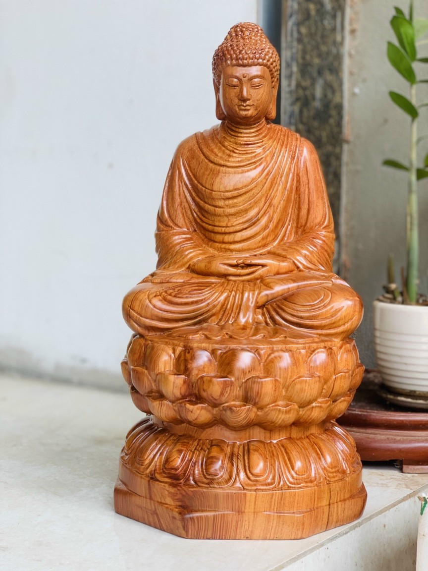 Tượng phật thích ca cao 30 40 50 60cm gỗ hương đá liền khối