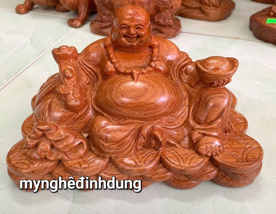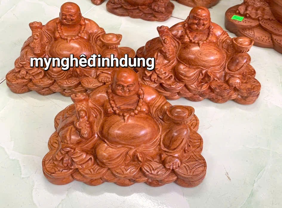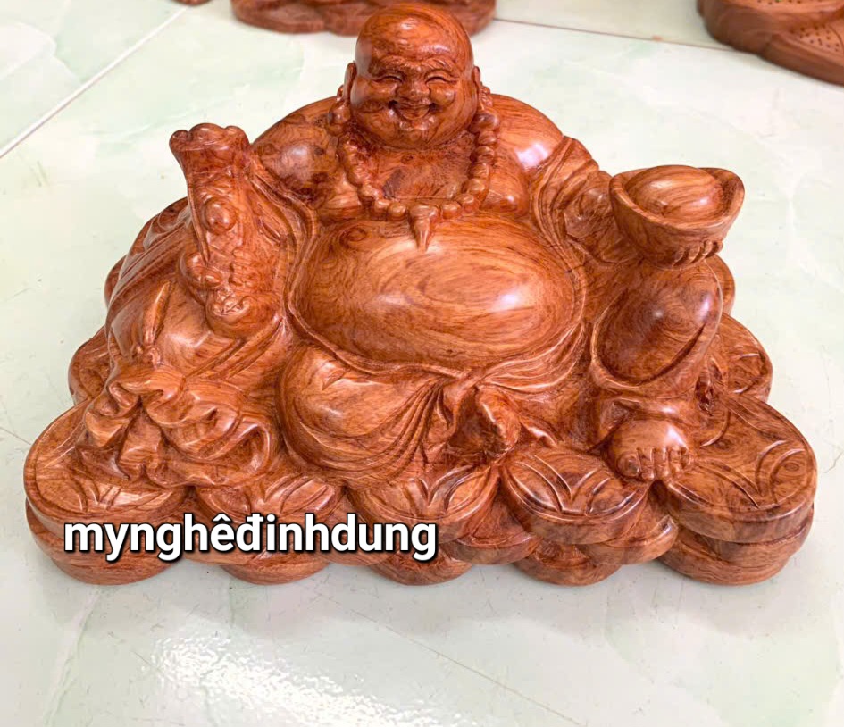 _ Tượng phật di lặc kéo bao vàng được làm bằng chất liệu gỗ huyết long liền khối tự nhiên 100% _ Kt ngang mặt 20cao10sau 7cm _ Tượng được chạm khắc gọt tỉa vô