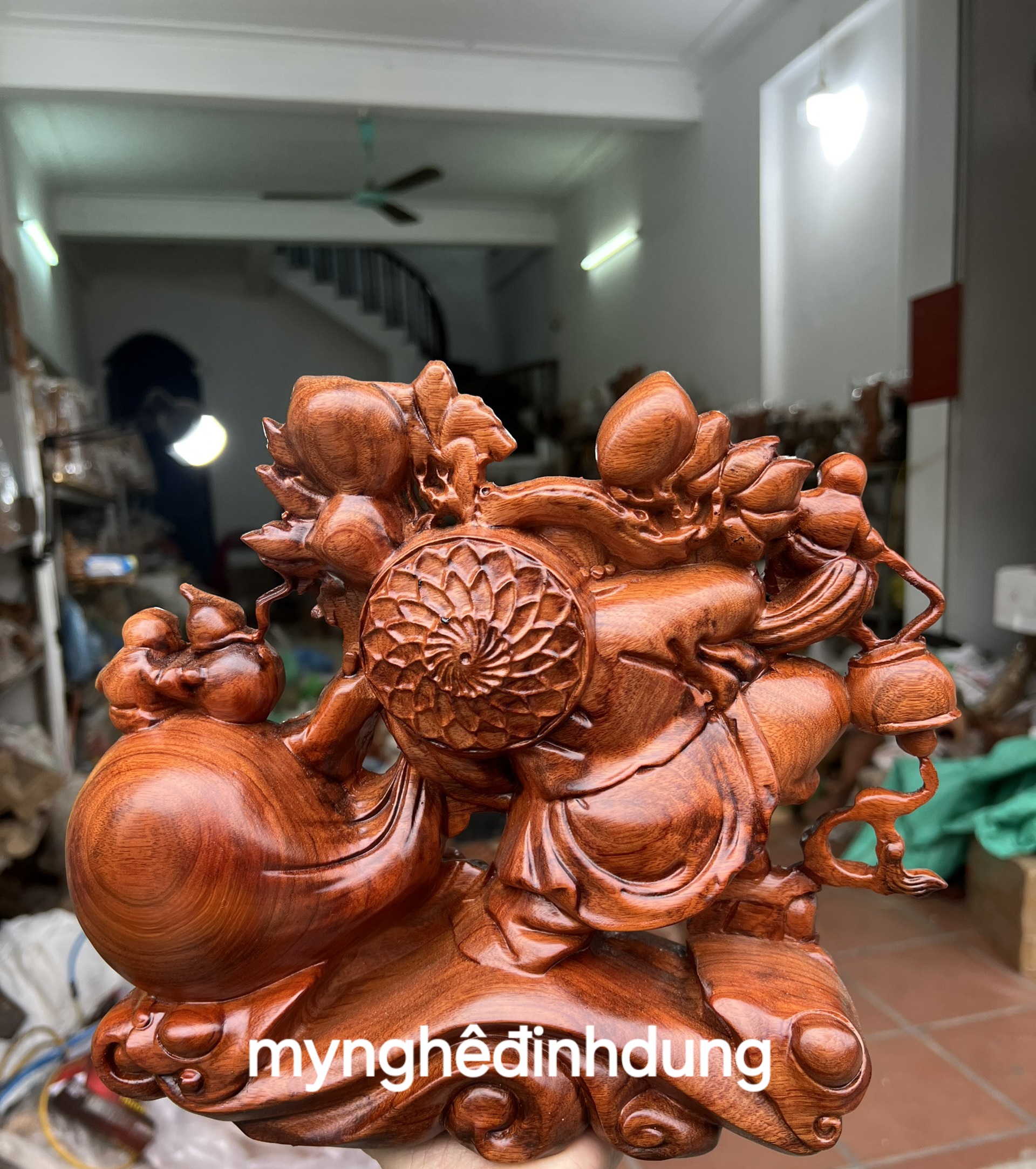 TƯỢNG DI LẶC NÂNG THỎI VÀNG GỖ HƯƠNG - BẢO KHÁNH