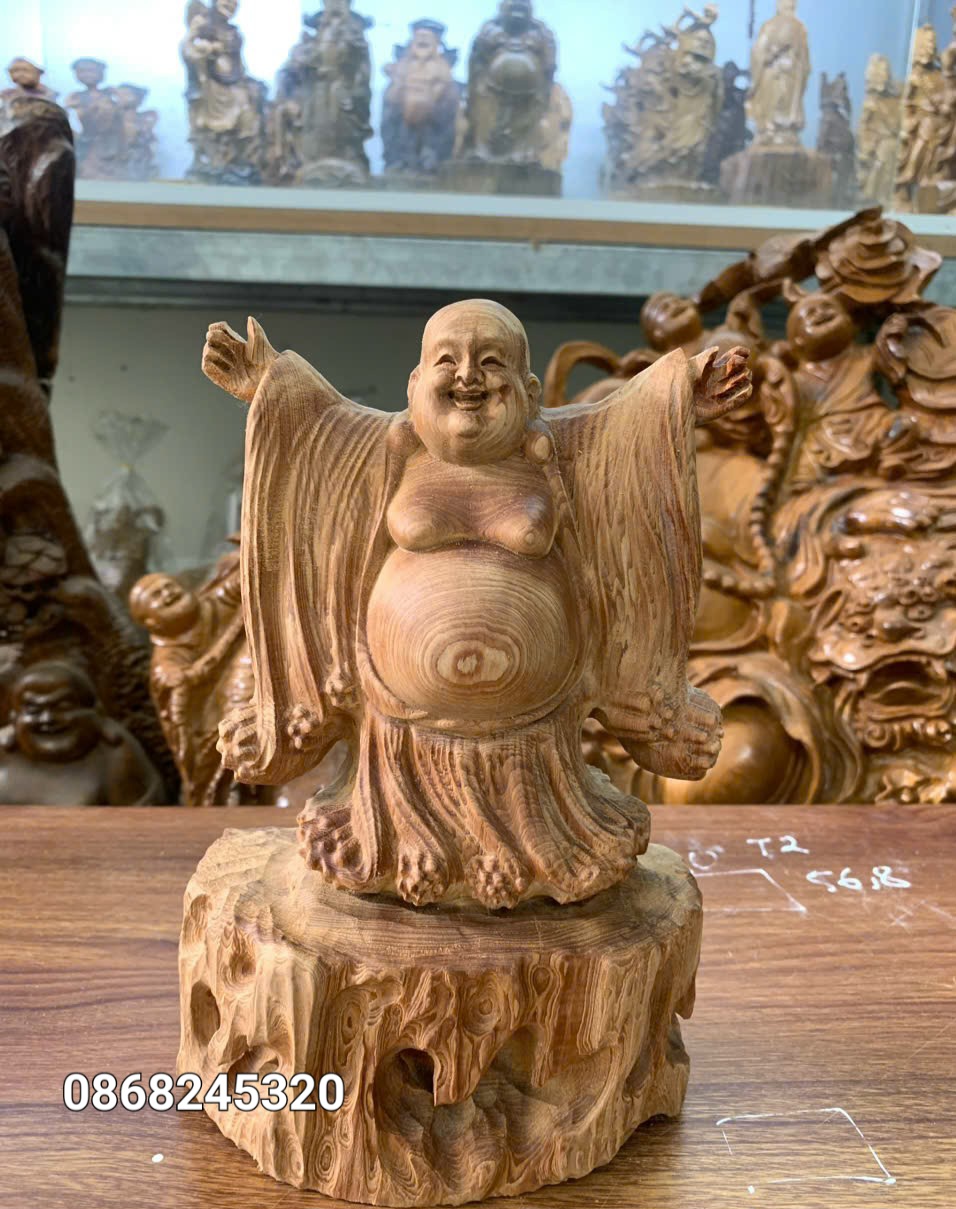 Mua tại TiktokTượng phật di lặc nghênh hỷ được làm bằng chất liệu gỗ ngọc am liền khối tự nhiên 100% Kt cao 22×17×6cm