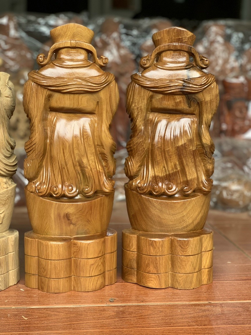 _ Căp tượng thần tài thổ địa được làm bằng chất liệu gỗ hương đá tự nhiên 100%,Và được sơn giả cổ cao cấp _ Kt cao 20×12×8cm _ Cặp tượng được chạm khắc tỉ