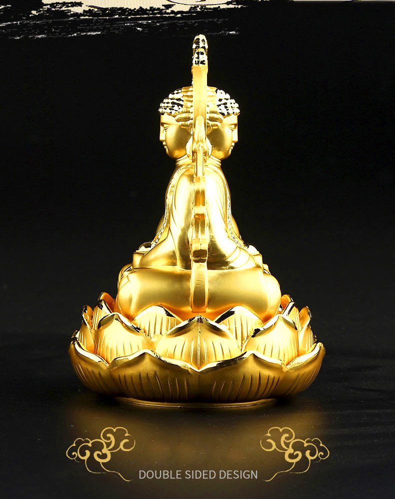 [VẬT PHẨM PHONG THUỶ XE HƠI/Ô TÔ] Tượng Phật quan âm 2 mặt mạ vàng ngồi trên đài sen