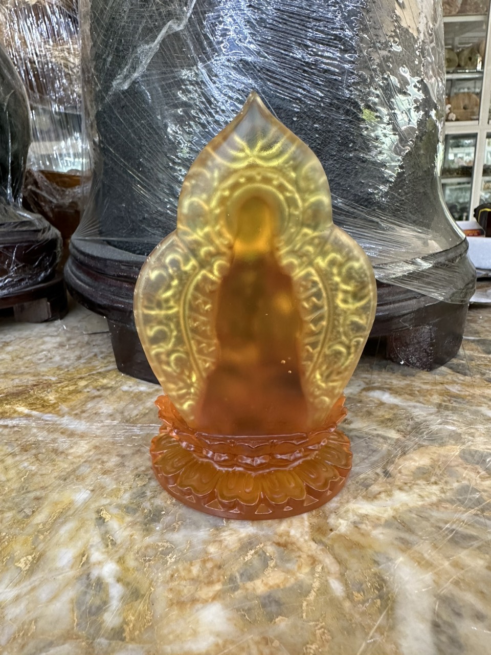 Tượng phật A Di Đà lưu ly màu hổ phách