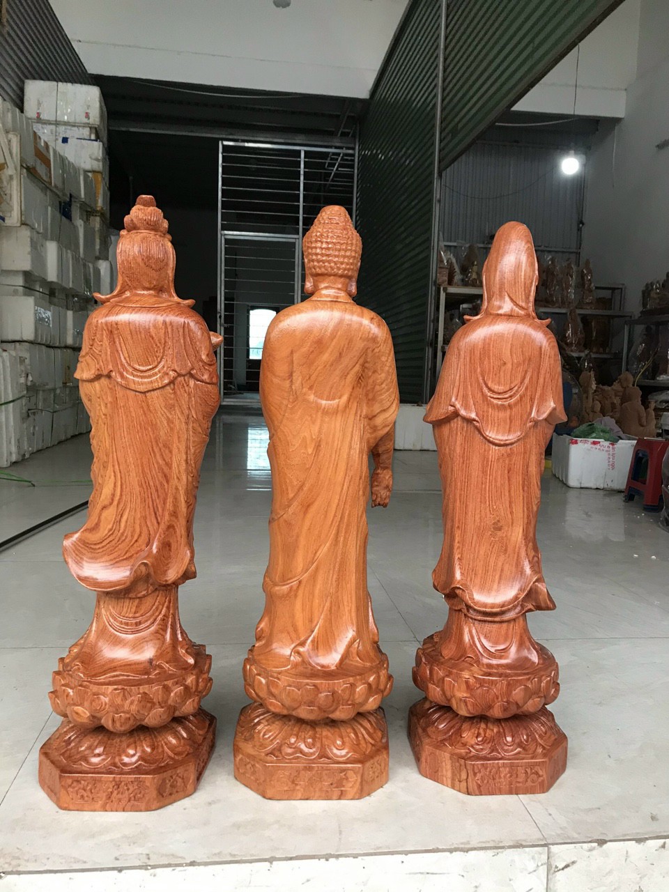 Cách lập ban thờ Tây Phương Tam Thánh. Bộ tượng Tam Thánh Phật đứng cao 60cm gỗ hương đá