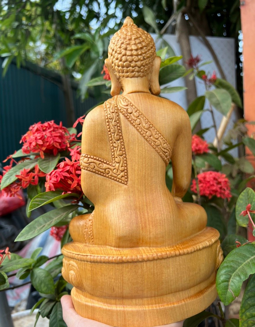 ✨Tượng phật thích ca phái nam tông bằng gỗ pơmu kt cao 28×18×12cm