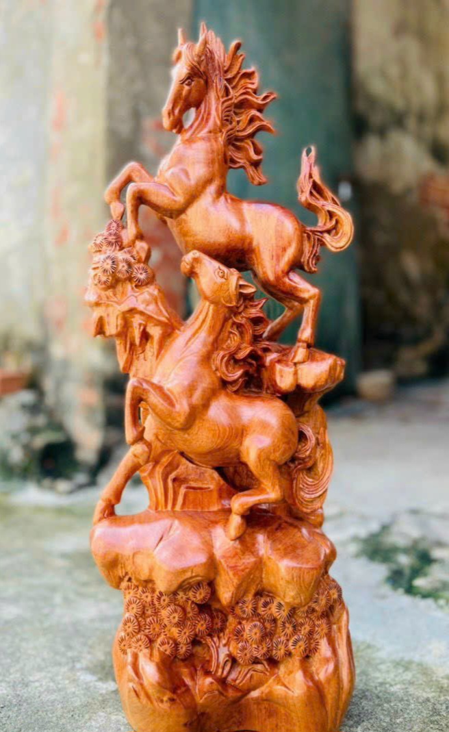 Báo giá tượng song mã uyên ương gỗ hương Gia Lai siêu vân
