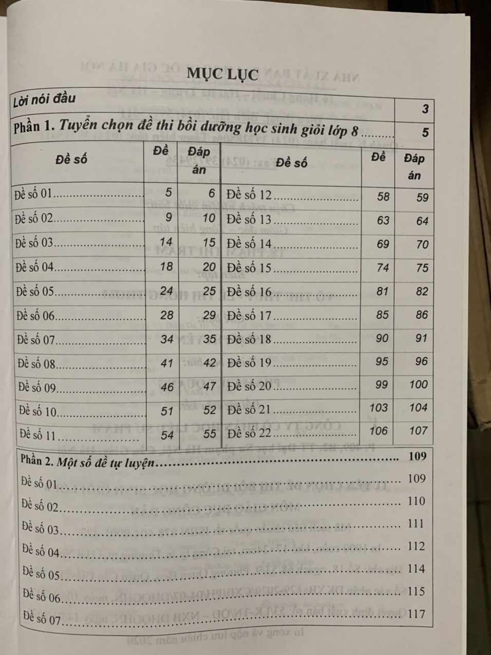 Mua tại TiktokNội dung gồm có: Phần 1. Tuyển chọn đề thi bồi dưỡng học sinh giỏi lớp 8 Cung cấp hệ thống để thi cấp quận, huyện kem đáp án và hướng dẫn chấm chi tiết Đề số 1 Đề số 2 Đề số 3 Đề số 4 Đề số 5 Đề số 22 Đáp án Phần 2. Một số đề tự luyện Sau những đề có cảm giác bạn và hướng dẫn. Vậy chúng tôi có chọn lọc và đưa thêm một số đề tự luận để các em tự làm đánh giá năng lực Đề số 1 Đề số 2 Đề số 3 Đề số 7 Nhà xuất bản: NXB Đại Học Quốc Gia Hà Nội Tác giả: Nguyễn Thị Hằng Số trang: 119 Xuất bản: 2020 Kích thước: 17 x 24 cm Cân nặng: 200 Giá bìa: 48.000₫