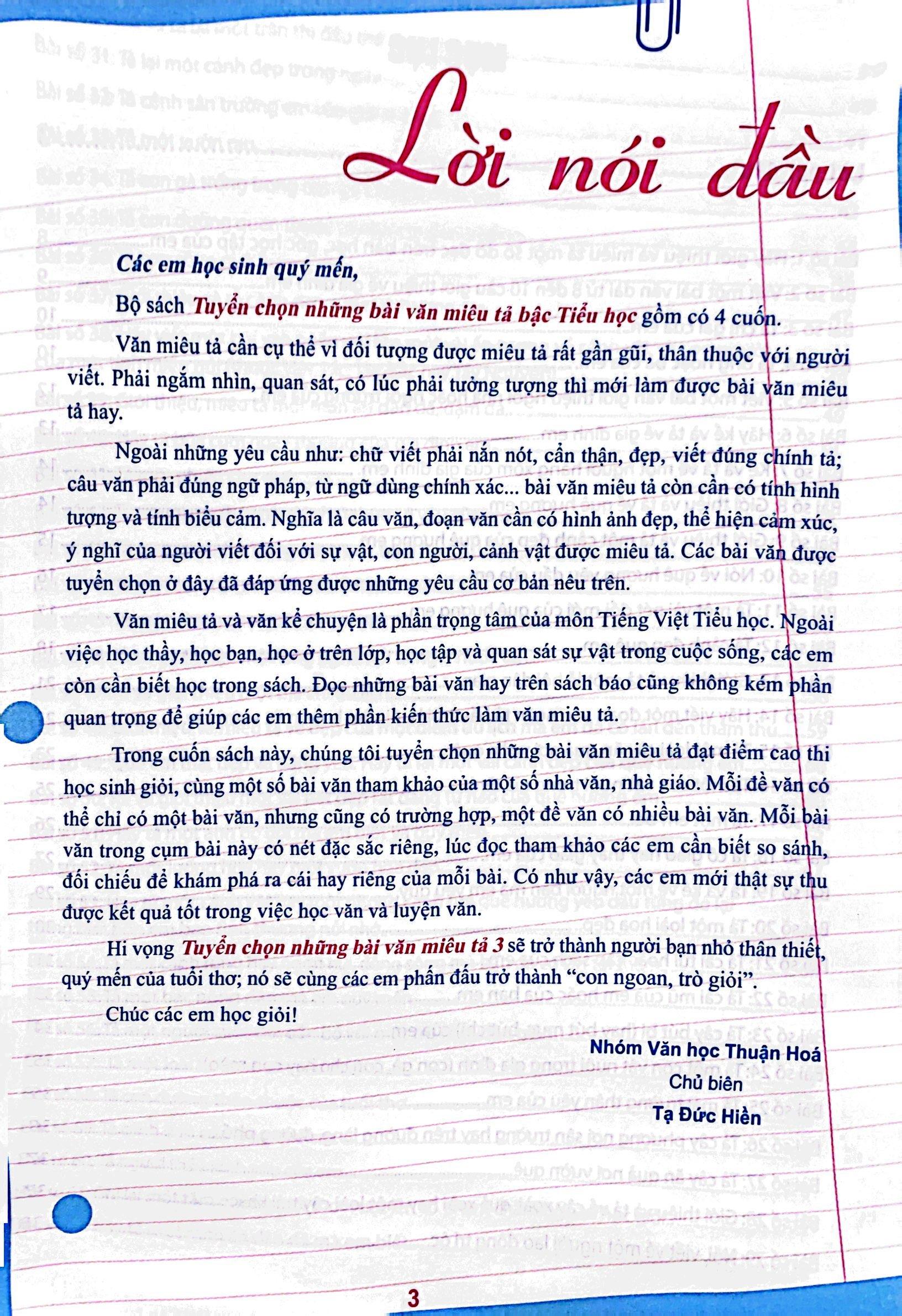 Văn miêu tả và văn kể chuyện là phần trọng tâm của môn Tiếng Việt Tiểu học. Ngoài việc học thầy, học bạn, học ở trên lớp, học tập và quan sát sự vật trong cuộc sống, các em còn cần biết đọc sách. Đọc những bài văn hay trên sách báo cũng không kéo phần quan trọng để giúp các em thêm phần kiến thức làm văn miêu tả. Mỗi bài văn đều có nét đăc sắc riêng, lúc đọc tham khảo các em cần biết so sánh, đối chiếu để khám phá ra cái hay riêng của mỗi bài. Có như vậy, các em mới thật sự thu được kết quả tốt trong việc học văn và luyện văn.