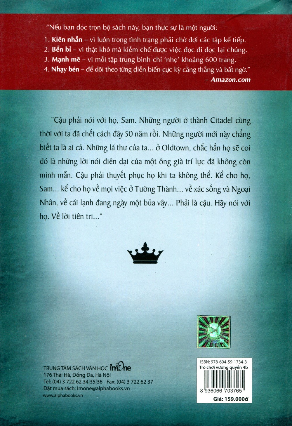 Tuyển Tập Series Tiểu Thuyết Sử Thi Viễn Tưởng Bán Chạy Nhất Nước Mỹ Cuat Tác Giả George R. R. Martin: Trò Chơi Vương Quyền 4B - Lời Tiên TriTuyển Tập Series Tiểu Thuyết Sử Thi Viễn Tưởng Bán Chạy Nhất Nước Mỹ Cuat Tác Giả George R. R. Martin: Trò Chơi Vương Quyền 4B - Lời Tiên Tri