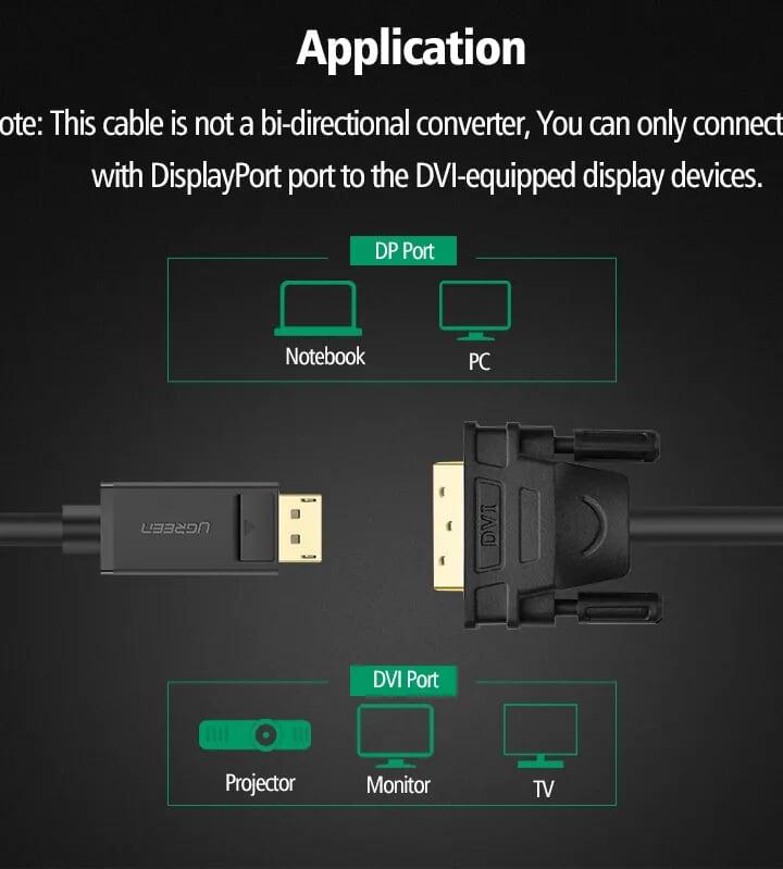 ✨Ugreen UG10242DP103TK 1M màu Đen Cáp chuyển đổi DP sang DVI 24 + 1 Hỗ trợ độ phân giải 1920x1200 - HÀNG CHÍNH HÃNG
