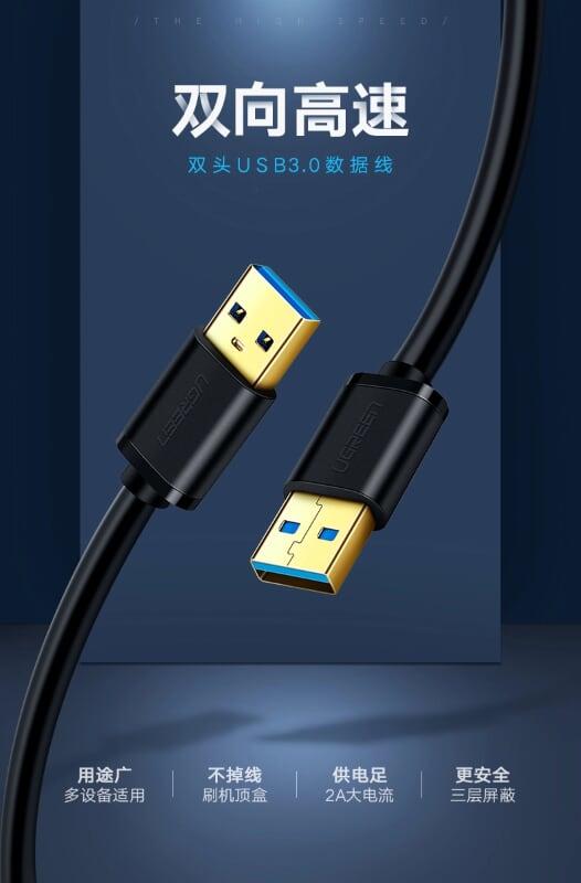 Cáp USB 3.0 hai đầu đực dài 0,5m chính hãng Ugreen 10369. Giá 70k