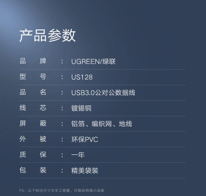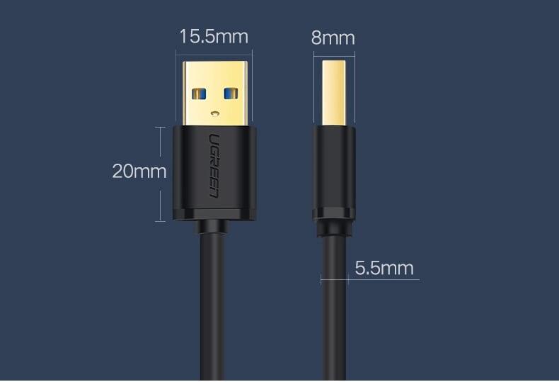 Ugreen 30753 1m usb 3.0 a male to b male print cable niken plated us210 1. Length : 1M 2. Color : Black 3. USB Version : 3.0 4. Data Transfer Link Cable USB 3.0