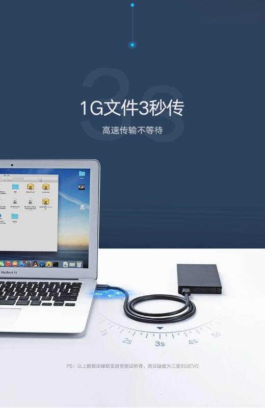 1. Transmission rate: 480mbps 2. Cable lenght: 3m 3. It's also backward compatible with full-speed USB 1.1 (12Mbps) and low-speed USB 1.0 (1.5Mbps) 4. Plug and play, no driver needed. 5. Good quality ugreen usb