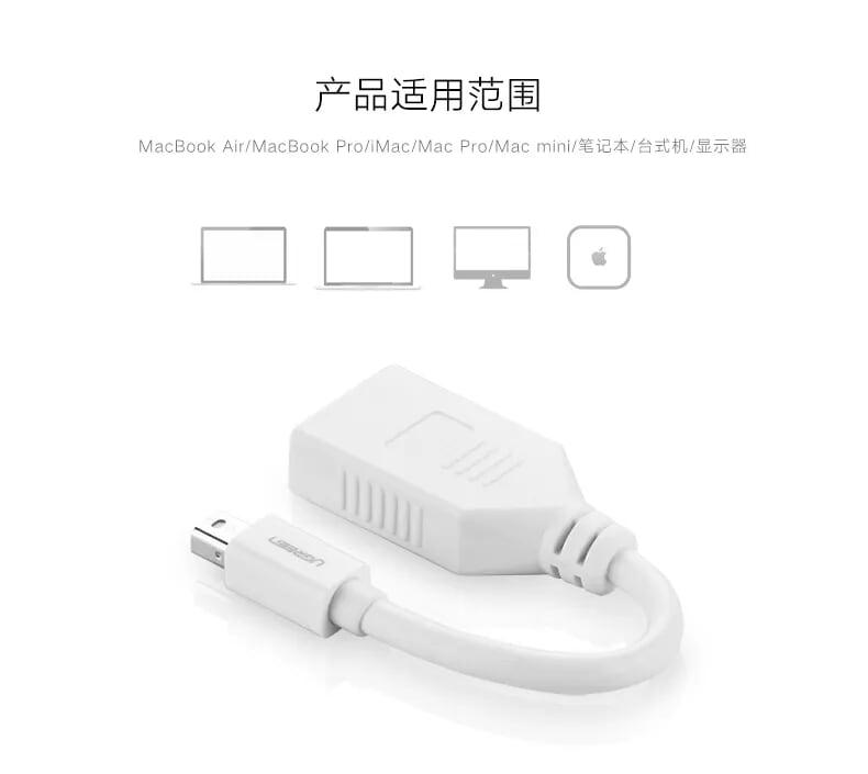 Ugreen 10460 Mini dp to HDMI female converter đầu chuyển đổi cable Support 1920*1080 60 MD112 1. Length: 18CM 2. Color : White 3. Mini DP - HDMI(âm) Full HD (1920 x 1080p) 4. 60g