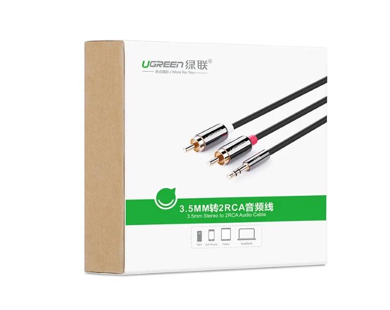 Ugreen 10510 3.5Mm Male To 2Rca Male Cable 2M AV116 1. Features: Connect the phone to the amplifier and sound system via RCA (Red White) 2. Length: 2M 3. Color: Black 4. Input: 3.5mm audio