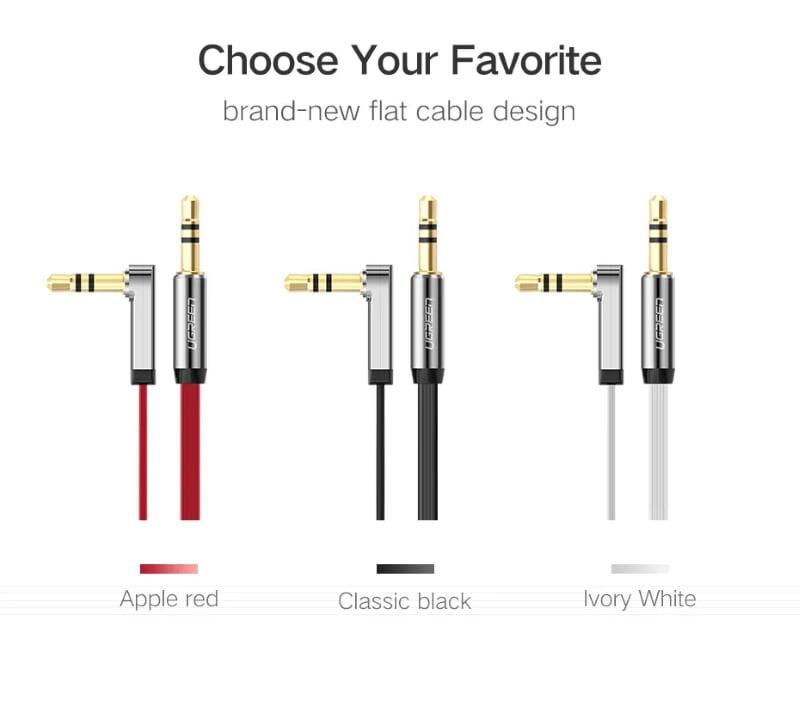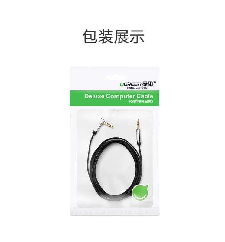 Ugreen 10597 3.5Mm Male To 3.5Mm Male Right Angle Flat Cable Gold Plated 1M AV119 1. Features: Cables for connecting phones, laptops, tablets with handsets. 2. Cable length: 1M 3. Color : Black 4. Wire