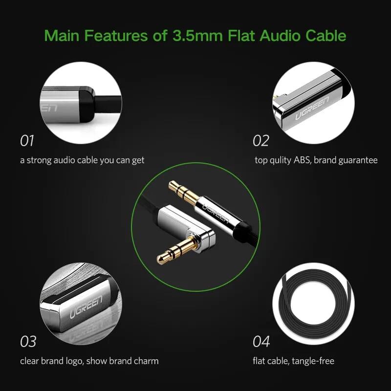 Mua tại TiktokUgreen 10596 3.5Mm Male To 3.5Mm Male Right Angle Flat Cable Gold Plated 0.5M AV119