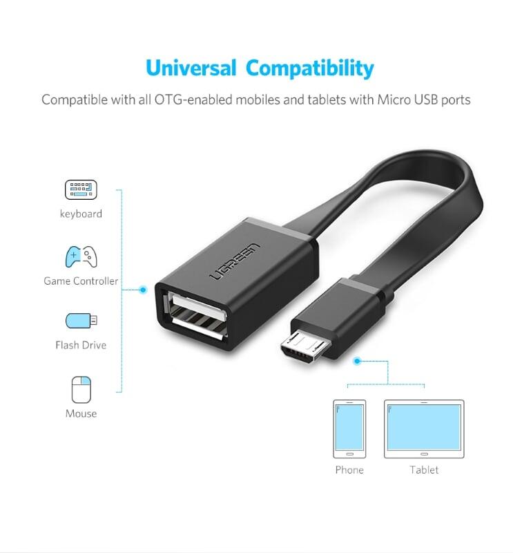 Mua tại TiktokUgreen 10821 10cm micro usb otg cable đen us133