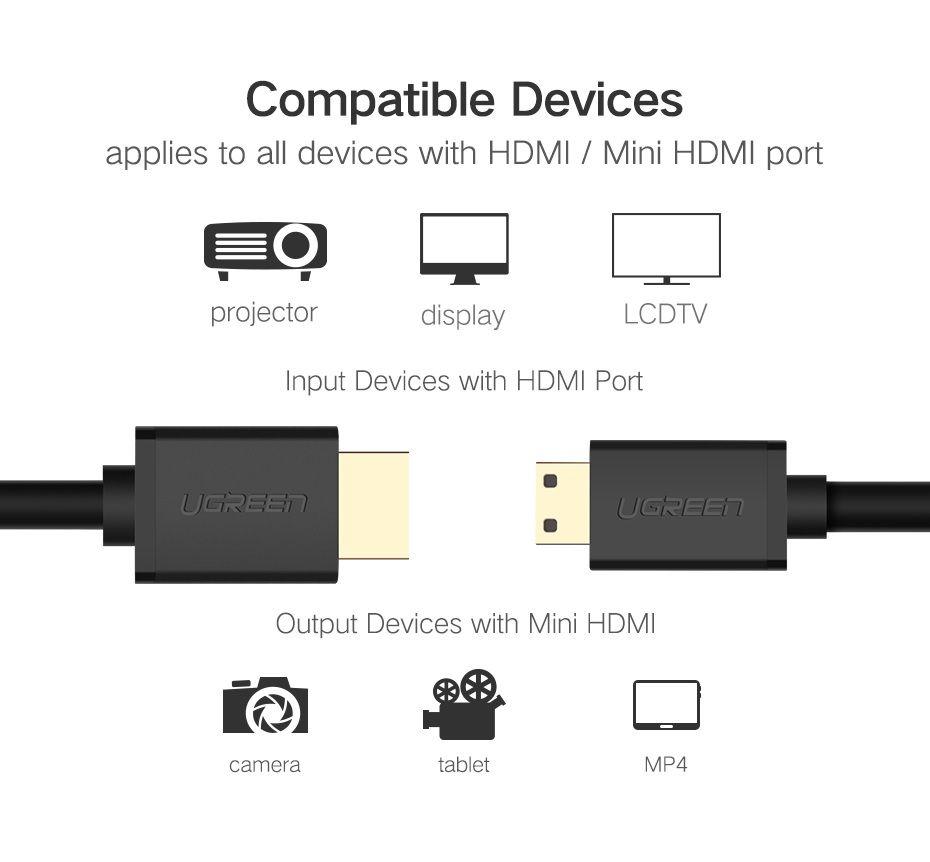 Ugreen 10195 1M Mini Hdmi To Hdmi Cable 1.4 Hd108 1. Cable length: 1M 2. Support high speed signal transmission up to 10.8Gbps. 3. Support Dolby TrueHD and DTS-HD Master Audio. 4. Add high-speed network