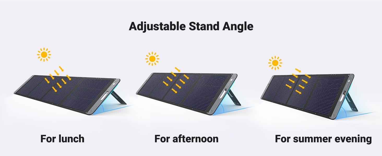 Connector Type: XT60 2. Waterproof Level: IP67 3. Self-contained daylight meter 4. Adjustable bracket 5. Foldable, easy to carry