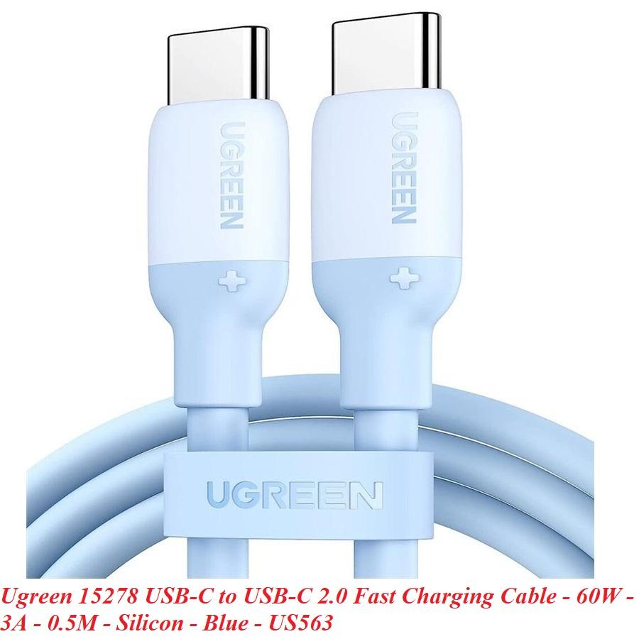 ✨Ugreen UG15281US563TK 60W 2M hỗ trợ QC4.0 3A Cáp sạc nhanh - truyền dữ liệu 2 đầu USB-C c-c dây nhựa Màu Xanh - HÀNG CHÍNH HÃNG