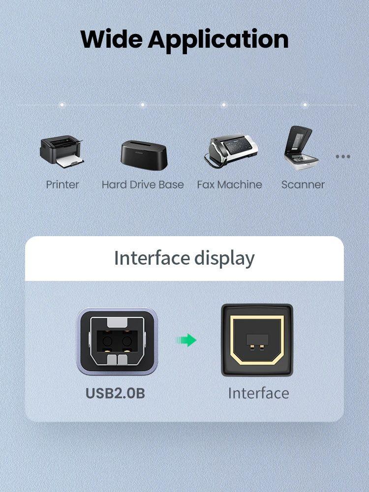 1. Input: USB-B 2.0 Male 2. Output: USB-C Male 3. Data transfer up to 480Mbps 4. USB-C is compatible with Thunderbolt3 5. No adapter, dongles or divers needed 6. 10 x 7 x 3 cm