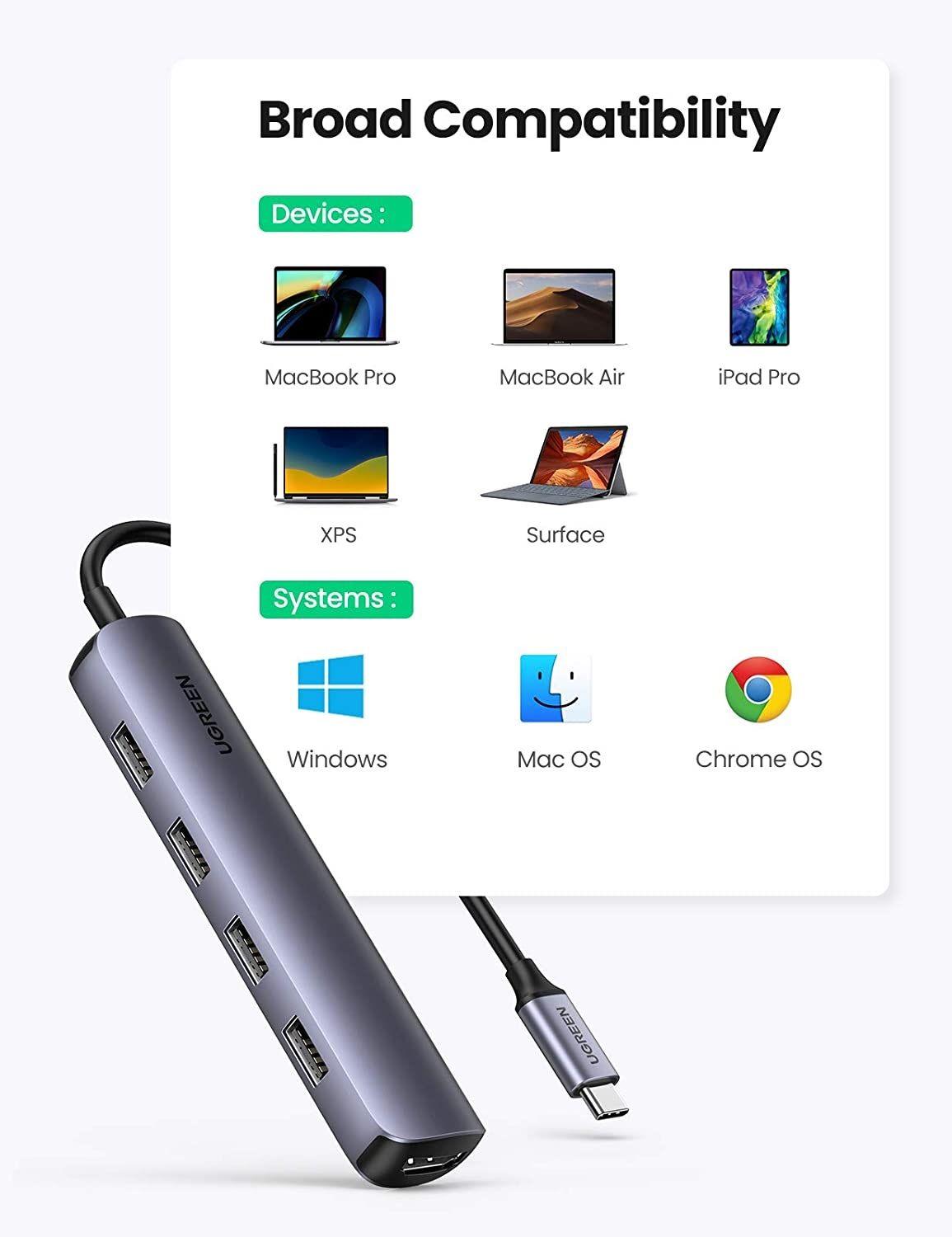 Mua tại Tiktok- Ugreen 5 in 1 USB-C Hub 4 USB 3.0 Port And 1 HDMI Port