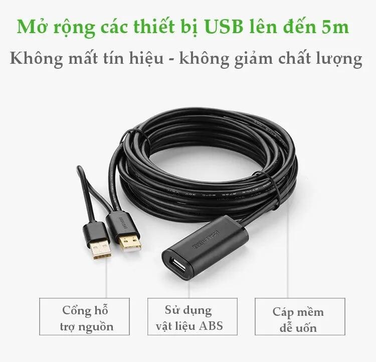 Review Cáp nối dài usb Ugreen 10321 10m chuẩn 2.0 chính hãng có chíp khuếch đại