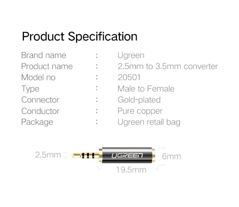Mua tại TiktokUgreen 20501 2.5Mm Male To 3.5Mm Female Adapter 20502