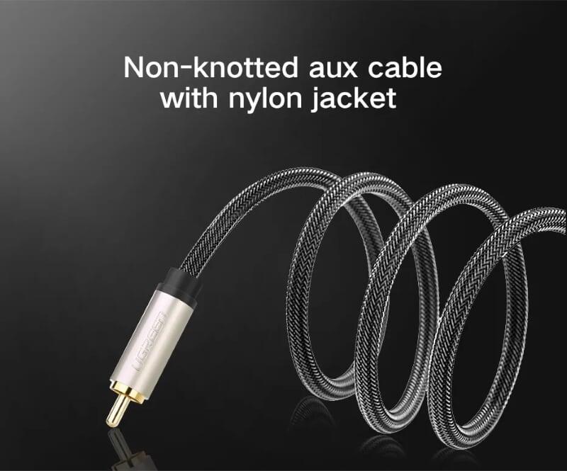 1. Connector A: 1 x 3.5mm Jack Male 2. Connector B: 2 x RCA Female, White (Audio left) Red (Audio right) 3. Cable Material: Nylon Braided 4. UGREEN 3.5mm(1/8" headphone plug) to 2 RCA(Right/Left) stereo