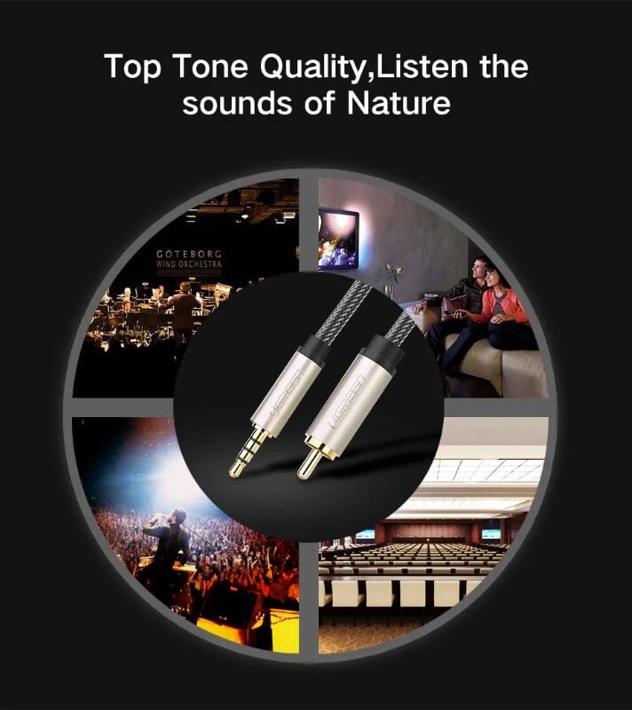 - Cáp Chuyển Đổi Ugreen 3.5mm Sang 2 RCA 10511 (1.5m) được dùng để kết nối từ điện thoại, máy tính, máy nghe nhạc… đến các thiết bị âm thanh có chuẩn RCA (hoa sen)