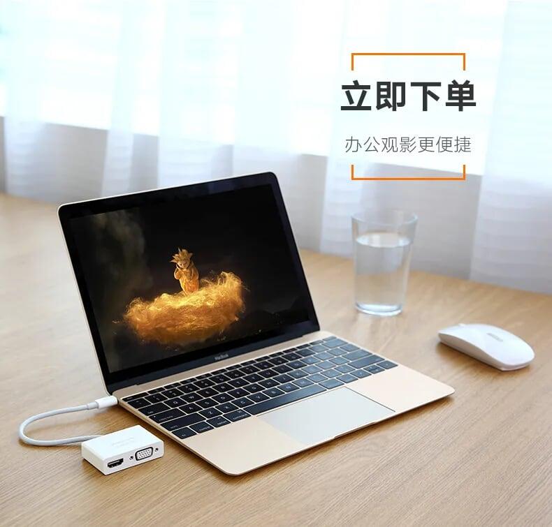 Ugreen 30843 15CM type c to hdmi vga trắng mm123 1. Features: Convert image and audio signals from USB-C to HDMI and VGA ports (VGA without Audio) 2. Cable length: 15cm 3. Color: White 4.