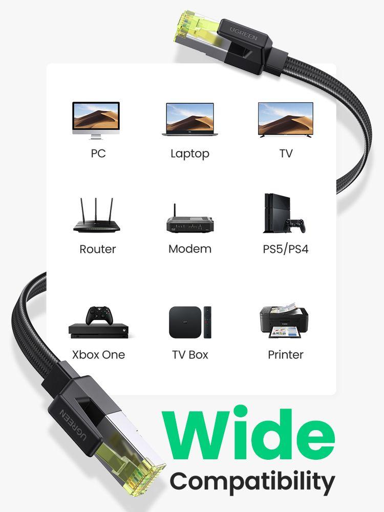 UGREEN Cat7 Flat Ethernet Cable RJ45 Flat 10Gbps LAN Cable Internet Modem Router