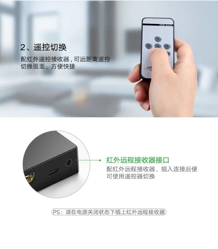 Mua tại TiktokUgreen 40205 Ugreen 5X1 Hdmi Switch Đen 40205