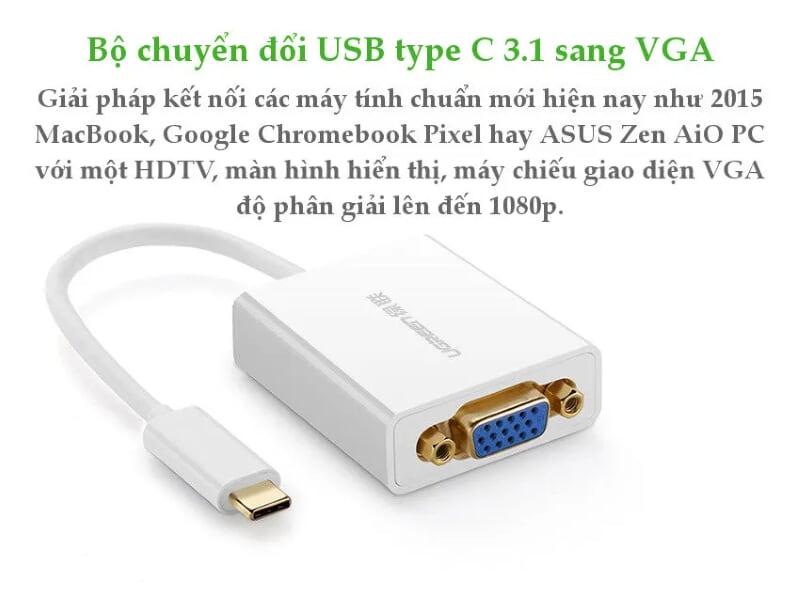 Mua tại TiktokUgreen 40274 15cm usb c to vga adapter trắng 40274