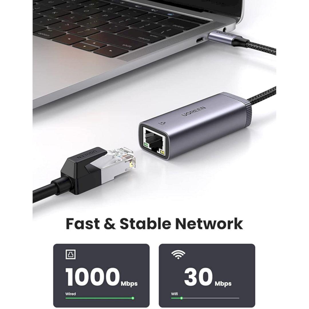 ✨Ugreen UG40322CM483TK 15CM Gigabit Chip AX88179A Thunderbolt 3 Cáp chuyển đổi USB-C sang RJ45 Tương thích với MacBook Pro, MacBook Air, iPad Pro, Surface Book, Dell XPS, Chromebook - HÀNG CHÍNH HÃNG