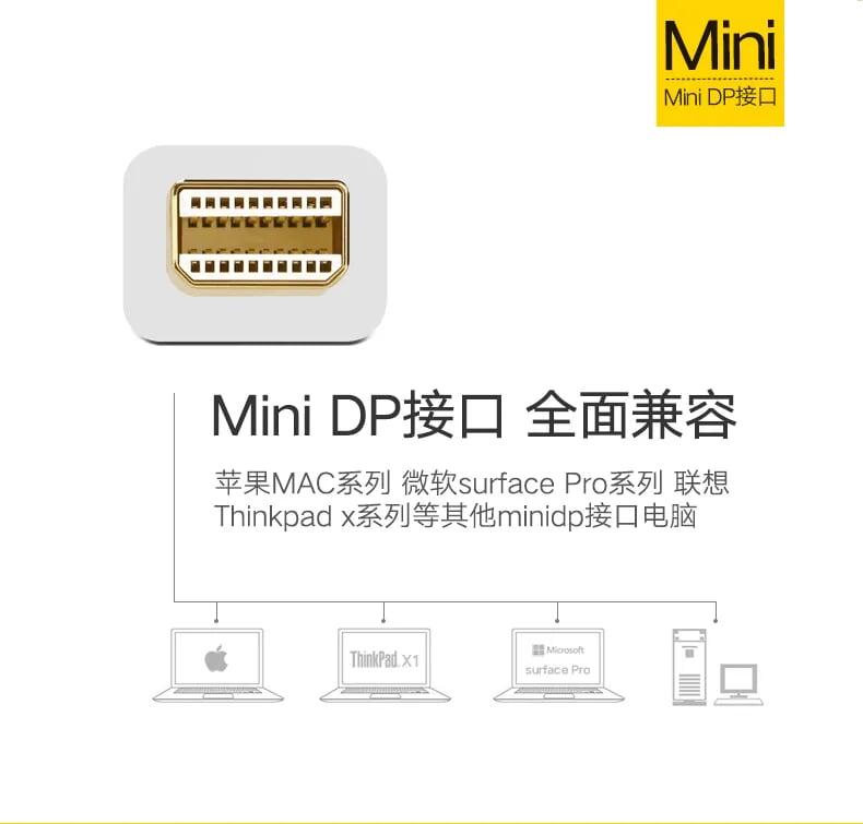 1. mini DP to DP 1.4 cable 2. DP protocol: DP 1.4 3. Total Broadband: 32.4Gbps 4. Resolution: 8K 5. Refresh rate: 8K/60Hz, 4K@/144/120Hz, 2K@240/165Hz 6. Shielding: aluminum foil + ground wire + metal braided