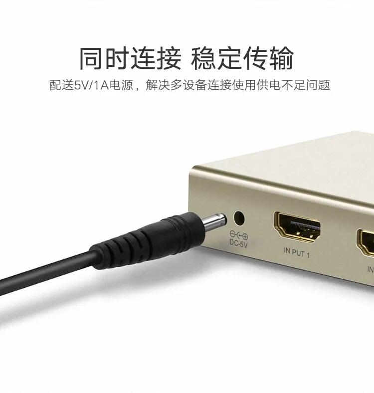 1. HDMI 1.4 standard, can be used for HDMI 2.0, 1.1 2. Input: HDMI x2 3. Outpput: HDMI x1 4. 100 g 5. 10 x 10 x 4 cm