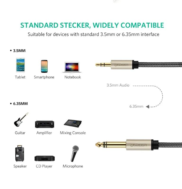 Mua tại TiktokUgreen 40806 3.5Mm To 6.35Mm/6.5Mmtrs Stereo Audio Cable 5M AV127