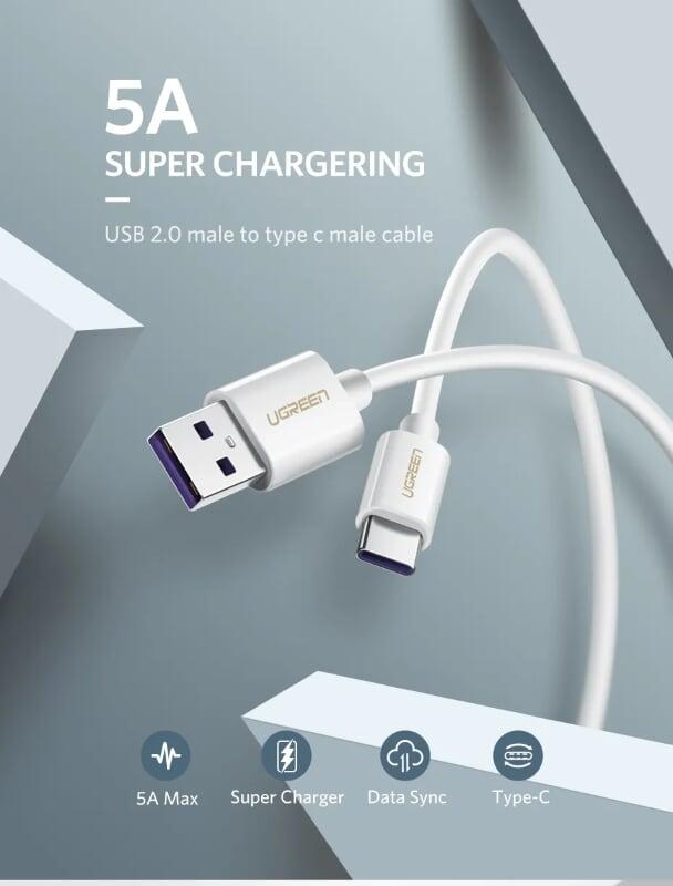 Mua tại TiktokUgreen 40887 Usb 2.0 To Type C 5A Date Cable White 0.5M Us253