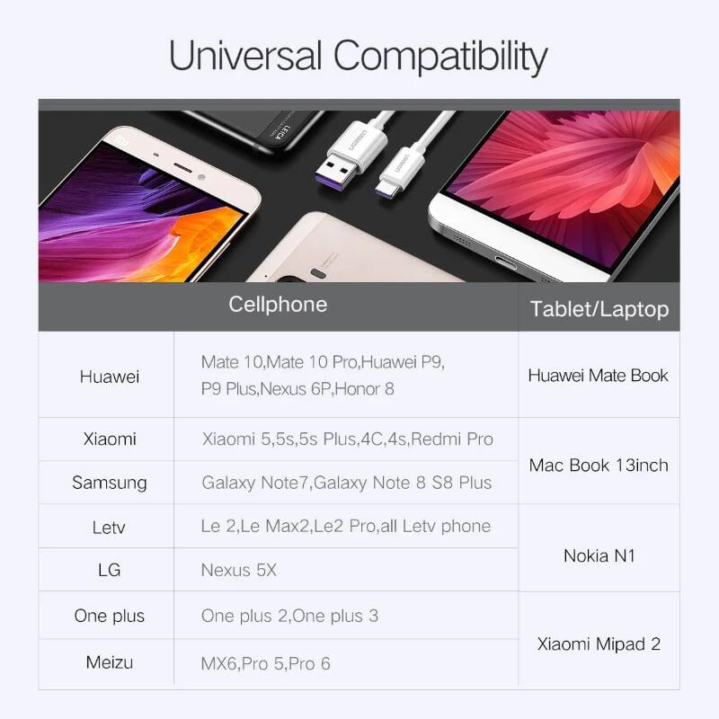 Ugreen 40418 Usb 2.0 To Micro Usb + Type C Data Cable White 1.5M Us142 1. Features: connect Laptop, Tablet USB-C port to digital camera, DSLR, music player, GPS Mini USB port 2. Cable length: