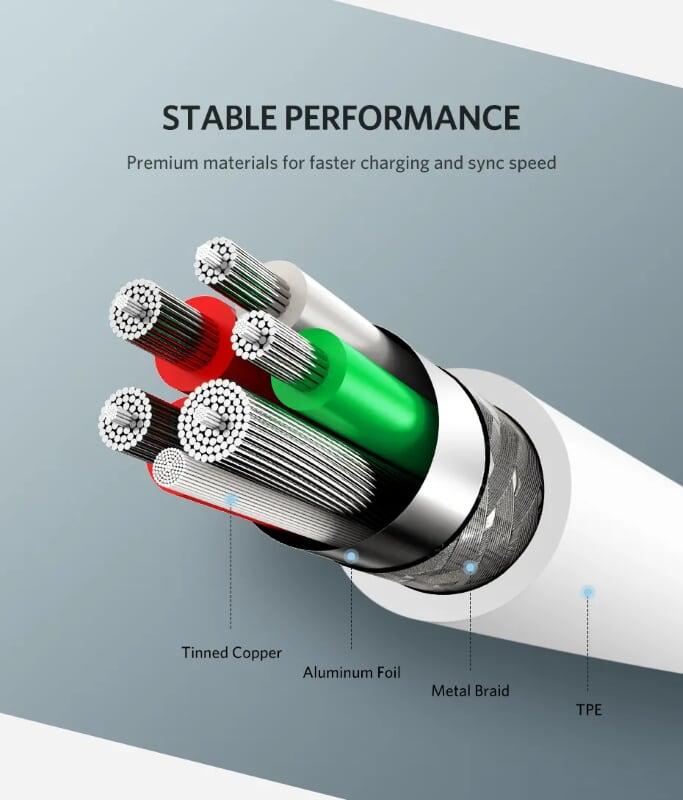 1. Connector A: USB A 2. Connector B: USB C 3. Charging Speed: 5V/3A (Max.) 4. Data Transfer: 480Mbps 5. This USB C charging cable fully complies with USB-C fast charge protocol and a built-in