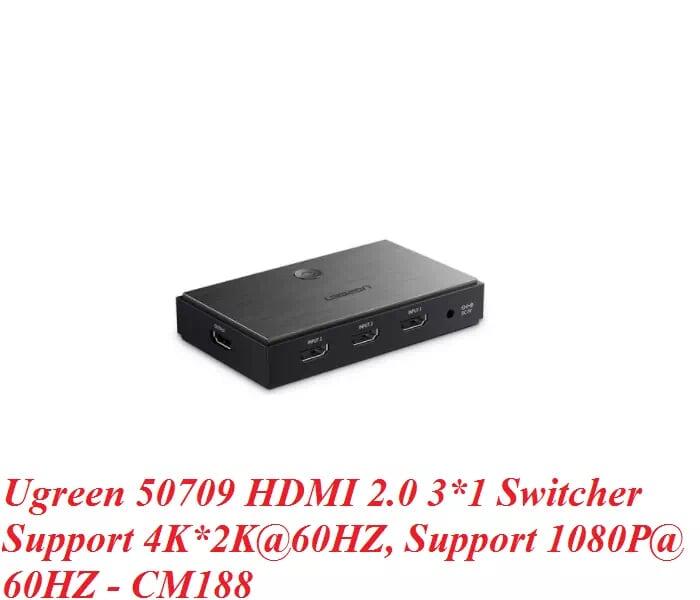 Ugreen 50709 Hdmi 2.0 3 In 1 Out Switcher Support 4K*2K@60Hz 1080P Cm188