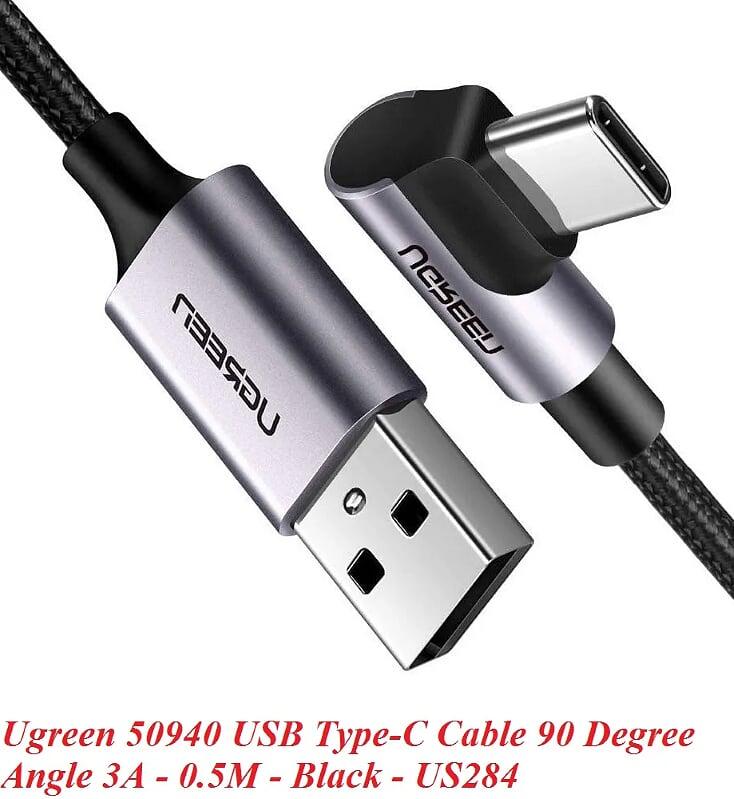 ✨Ugreen UG50940US284TK 0.5M 3A màu đen USB Type-C cáp bẻ góc 90 độ - HÀNG CHÍNH HÃNG