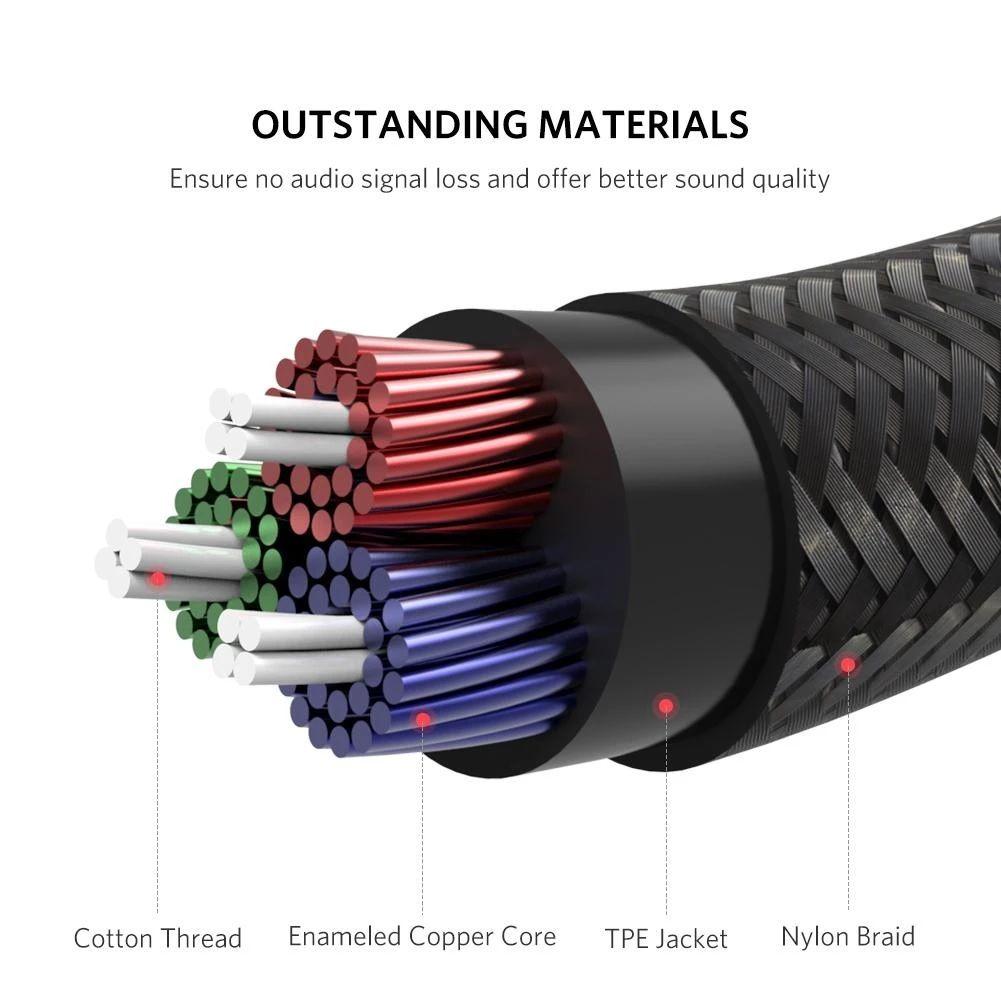 1.Connector type: Auxiliary 2.Cable type: Aux 2.Cable material: Nylon braided jacket, 4k gold-plated plugs, sturdy brass shells 3.Compatible devices: Laptop, Car aux stereo, Hedaphone, PlayStation, Personal Computer, MP3 MP4 players, Tablet, Xbox, Smartphone, Speaker 4.Color: