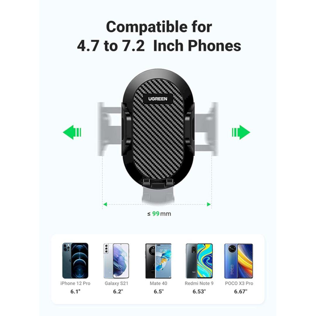 1. Brand : Ugreen 2. Model : 28606 - 60990B 3. Color : Black 4. Handle type: gravity 6. Mounting way: on the panel 7. Compatible phones: 4.7 - 7 inches 8. Material: (PC ABS)