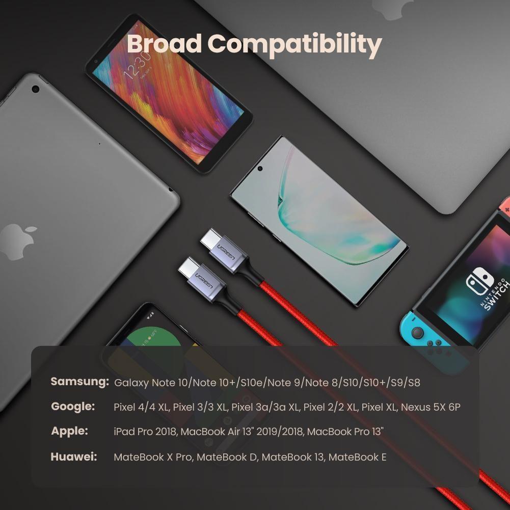 ✨Ugreen UG70296US294TK 2M 60w màu đỏ cáp usb 2 đầu type C hỗ trợ sạc nhanh đầu bọc nhôm chống nhiễu - HÀNG CHÍNH HÃNG