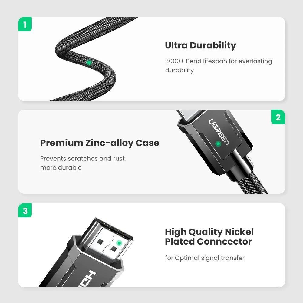 ✨Ugreen UG70320HD135TK 1.5M Cáp HDMI 2.1 8K 60Hz 4K 120hz Cao Cấp màu đen - HÀNG CHÍNH HÃNG