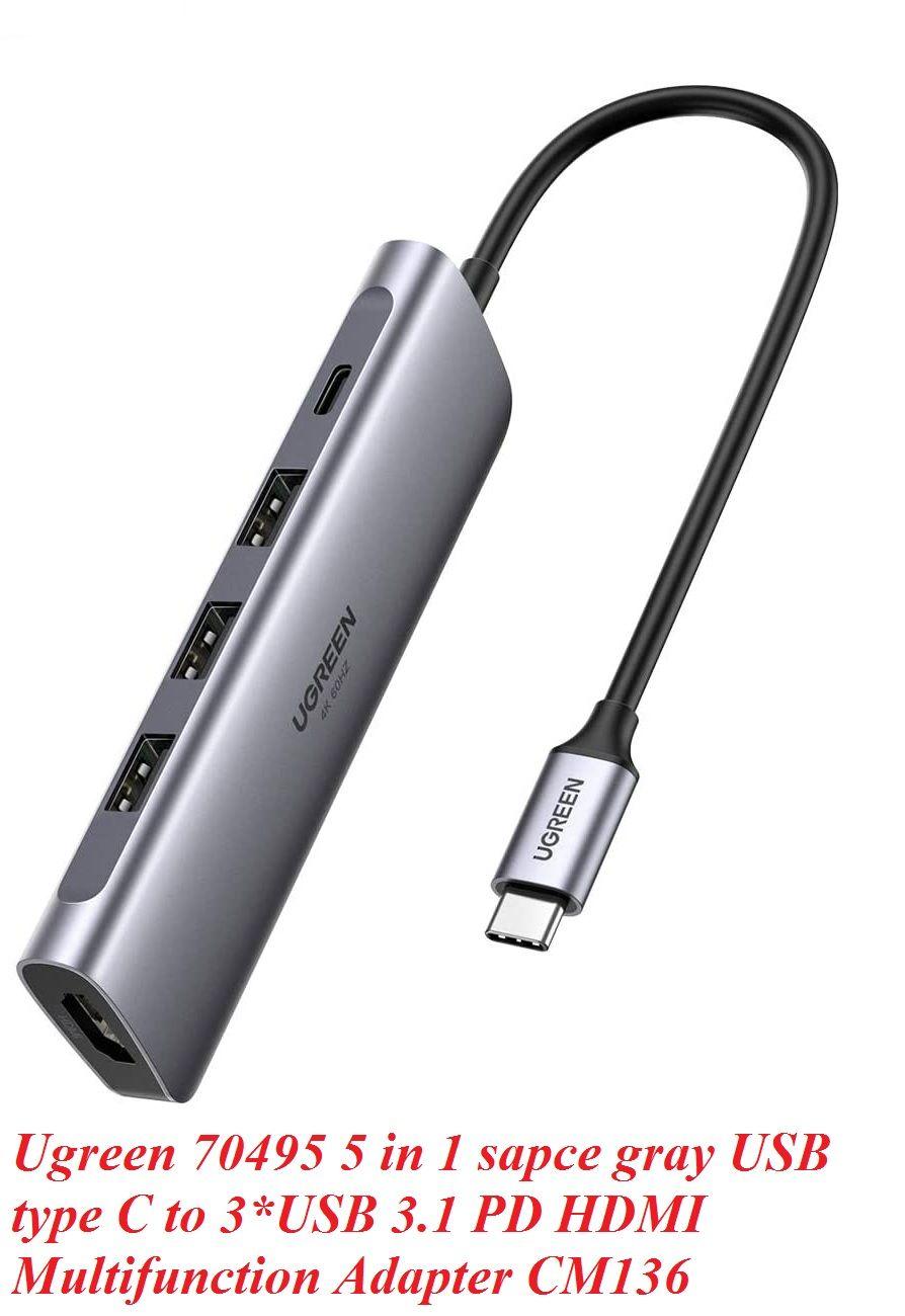 ✨Ugreen UG70495CM136TK 5 trong 1 màu xám bộ chuyển USB type C ra 3*USB 3.1 sạc 100w PD 4K HDMI - HÀNG CHÍNH HÃNG