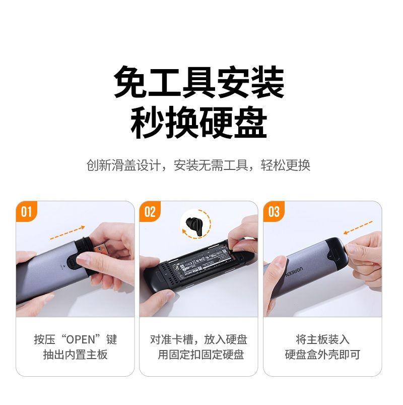 Cận ccảnh Hộp box đựng ổ cứng gắn ngoài USB-C 3.1 to SSD M.2 NVMe, PCIe, M-Key 10Gbps Ugreen 10902